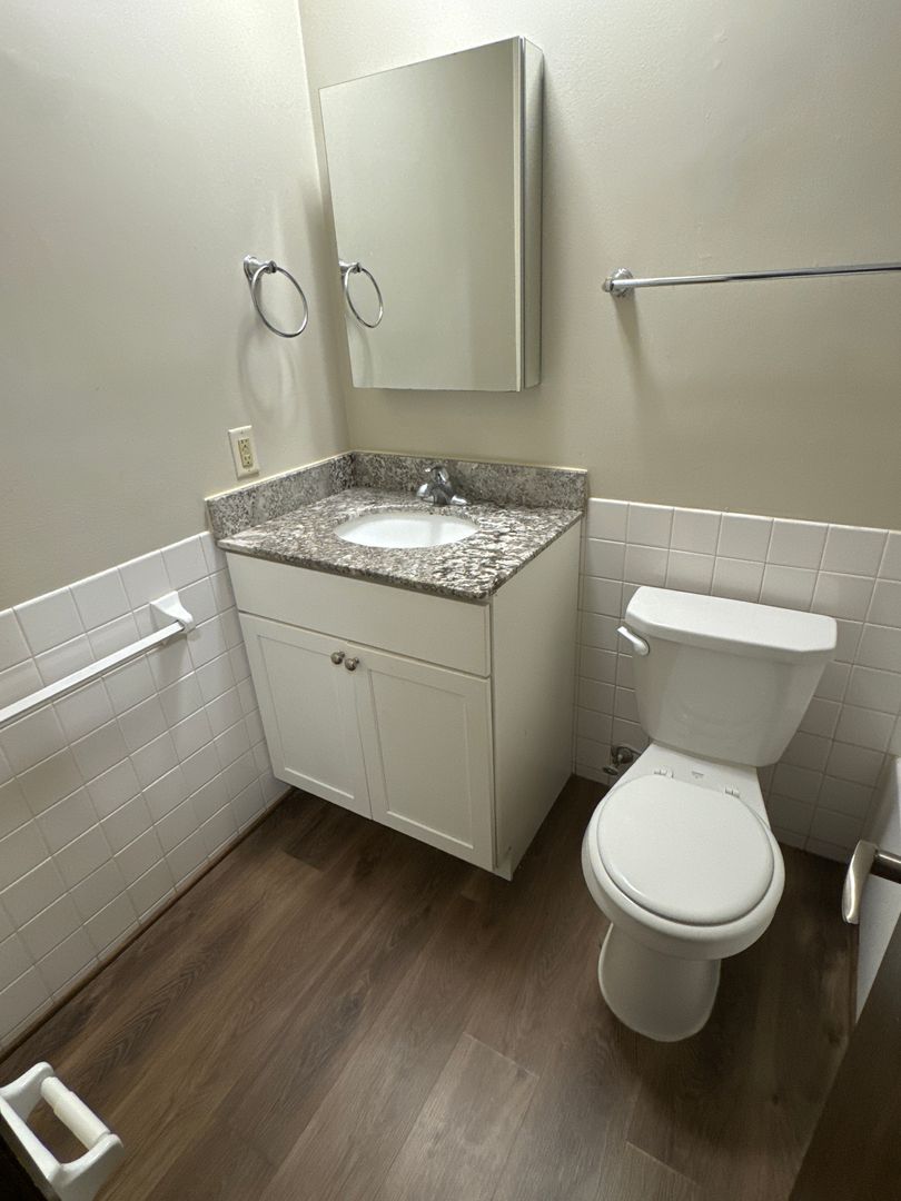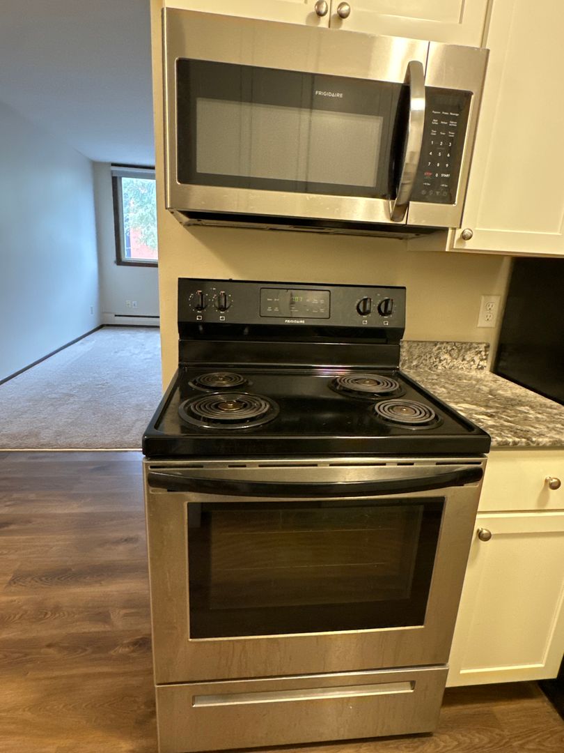 This updated one bedroom unit features hardwood floors throughout living room and kitchen with newer carpet in bedroom. Refinished kitchen features stainless steel appliances, new cabinets and granite counters. Spacious bedroom with large closet.