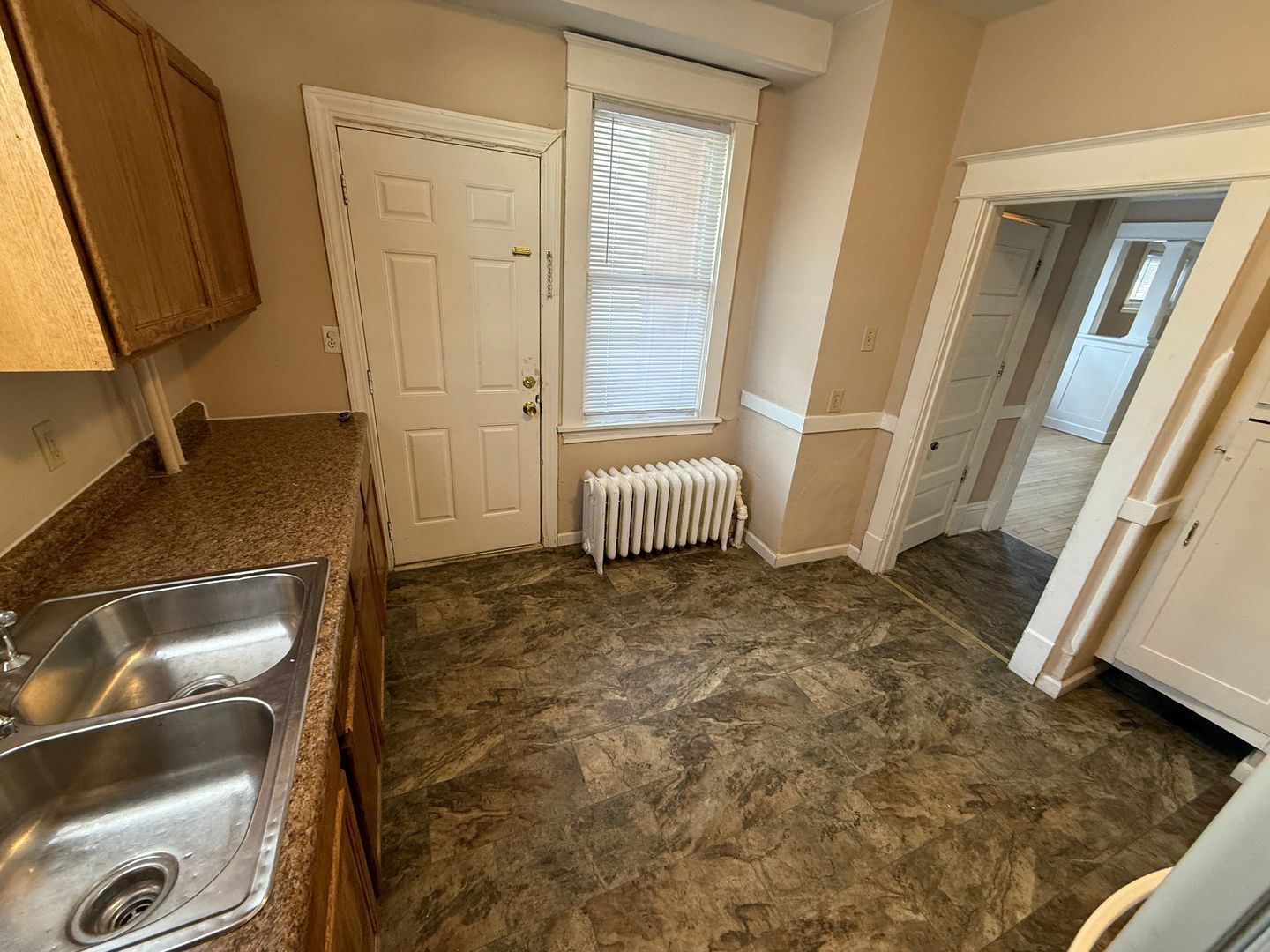 The functional kitchen features ample cabinetry, durable countertops, and full-size appliances, while both bedrooms offer comfortable layouts with hardwood flooring. Located in a quiet residential neighborhood with easy access to parks, shopping, dining, and transit, this home offers classic charm and convenient city living.